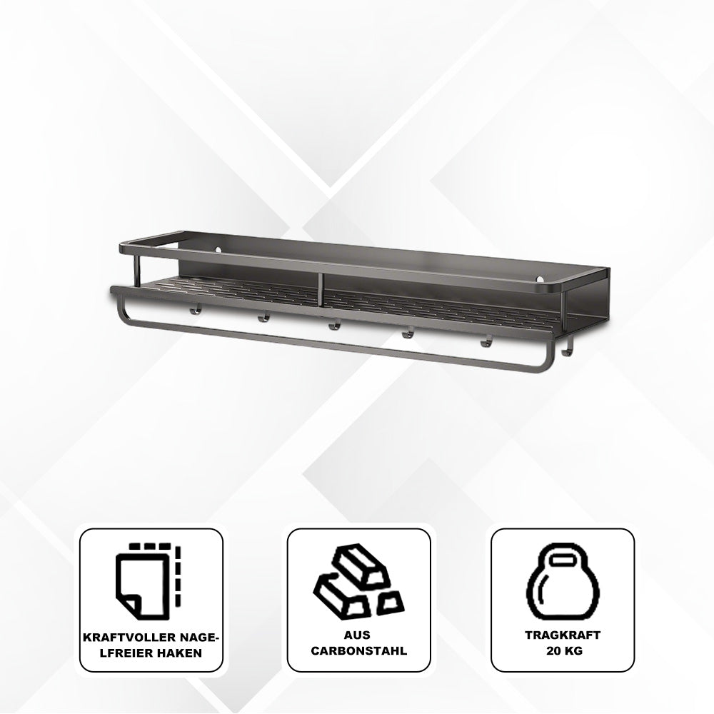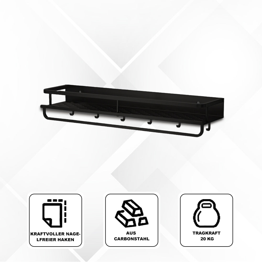 Mit intelligenten Details wie integrierten Haken und Handtuchhaltern für griffbereite Utensilien, einer universellen Größenanpassung und schlankem Design bei maximaler Stauraumnutzung, überzeugt dieses Regal durch durchdachte Funktionalität. Gleichzeitig garantiert der stabile Metallrahmen mit schwerelast-tauglicher Konstruktion, korrosionsresistenter Spezialbeschichtung und pflegeleichter Oberfläche dauerhafte Qualität – für eine Küche, die ebenso stylisch wie praktisch bleibt.