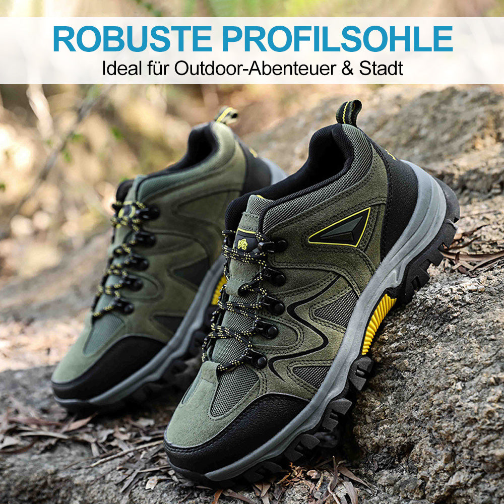 Unsere Wanderschuhe überzeugen durch innovative Technologie, die Komfort und Sicherheit perfekt vereint: Dank der stoßdämpfenden Sohle werden Ihre Gelenke entlastet - für ermüdungsfreies Gehen auch auf langen Touren. Das ergonomisch geformte Fußbett unterstützt eine natürliche Haltung und fördert gesunde Bewegungsabläufe. Gleichzeitig garantiert die profilierte All-Terrain-Sohle rutschfesten Halt auf jedem Untergrund, von steinigen Bergpfaden bis zu nassen Stadtstraßen. Ob beim täglichen Spaziergang oder anspruchsvollen Wanderungen - diese Schuhe begleiten Sie zuverlässig in jeder Situation.