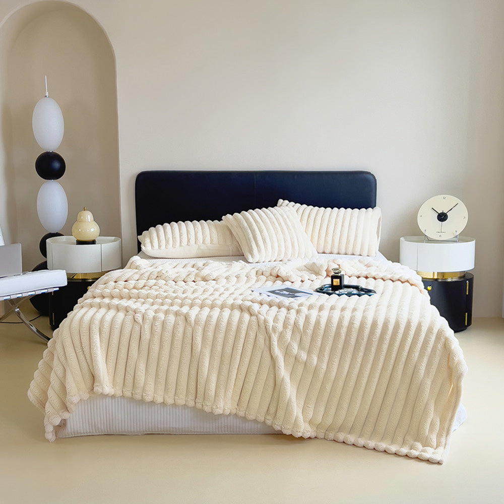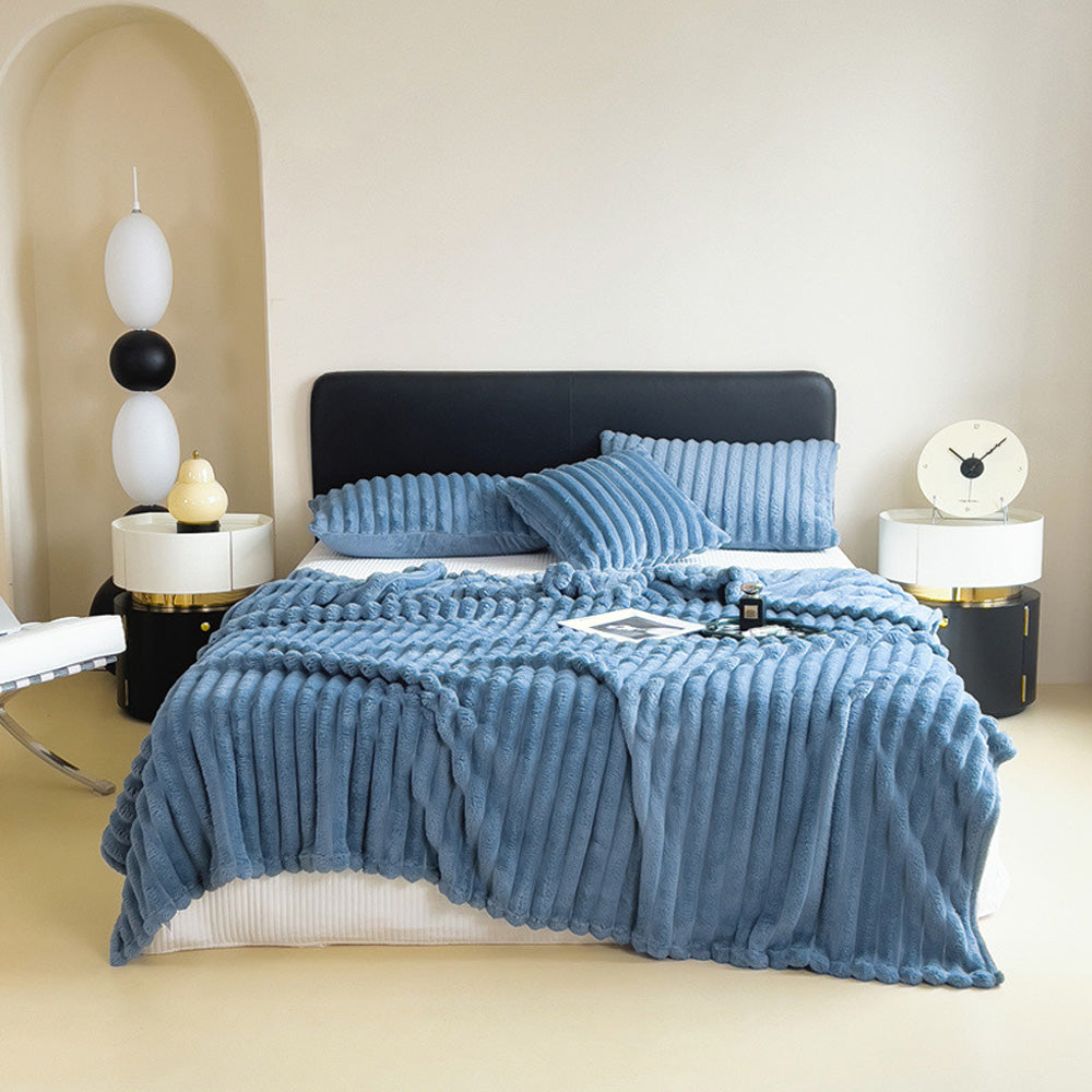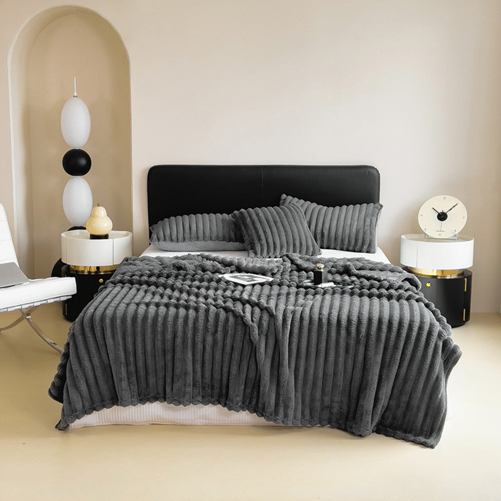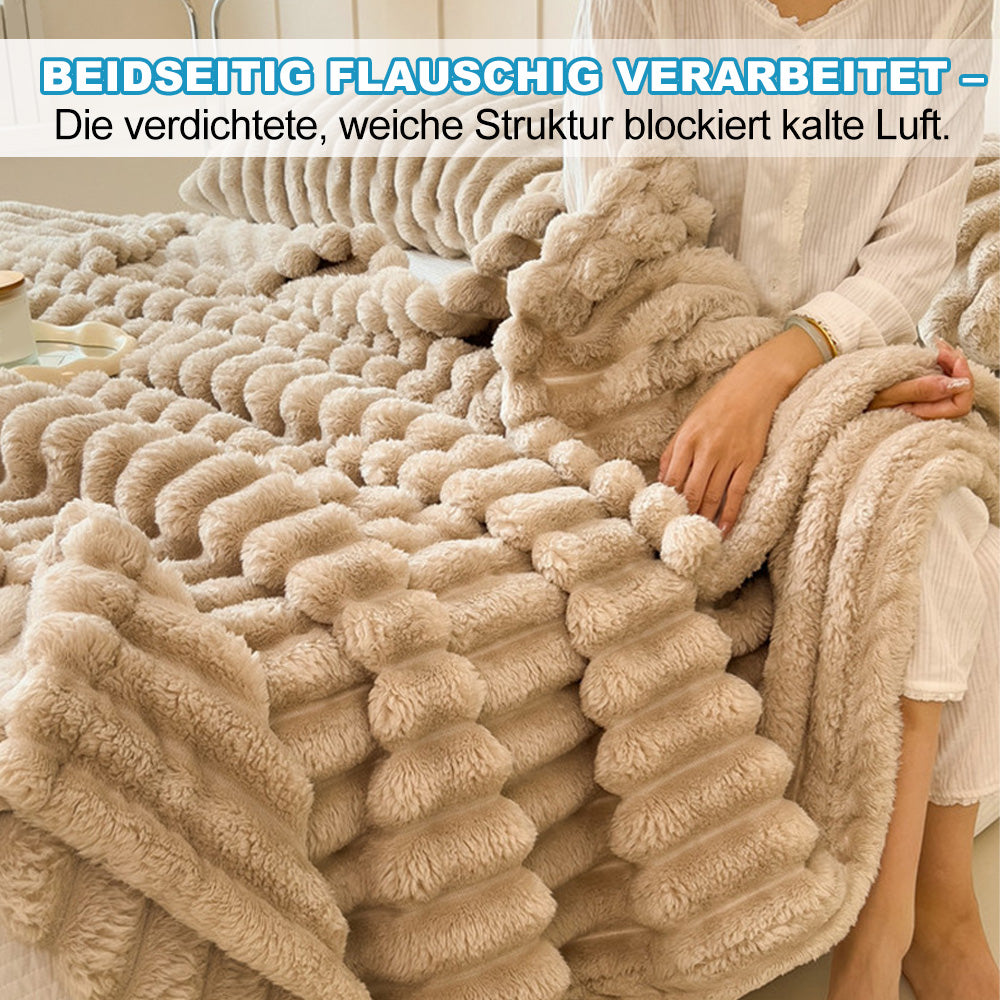 Die üppige, hochdichte Florstruktur der Decke imitiert feinste Naturfelle - eine einzige Berührung genügt, und Sie sehnen sich nach ihrer therapeutischen Umarmung.