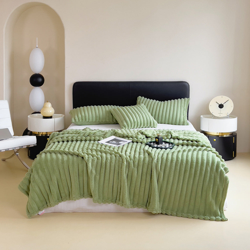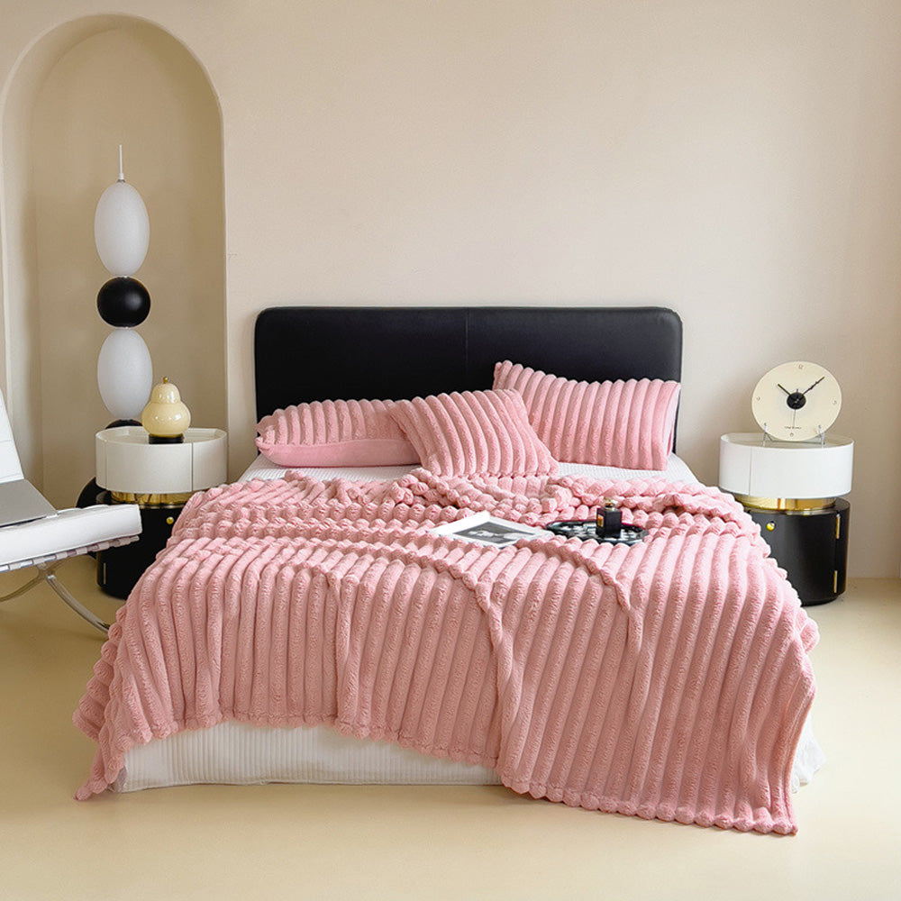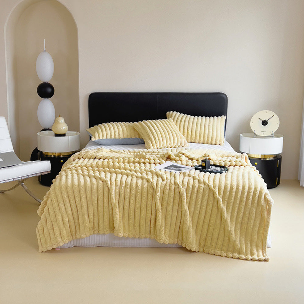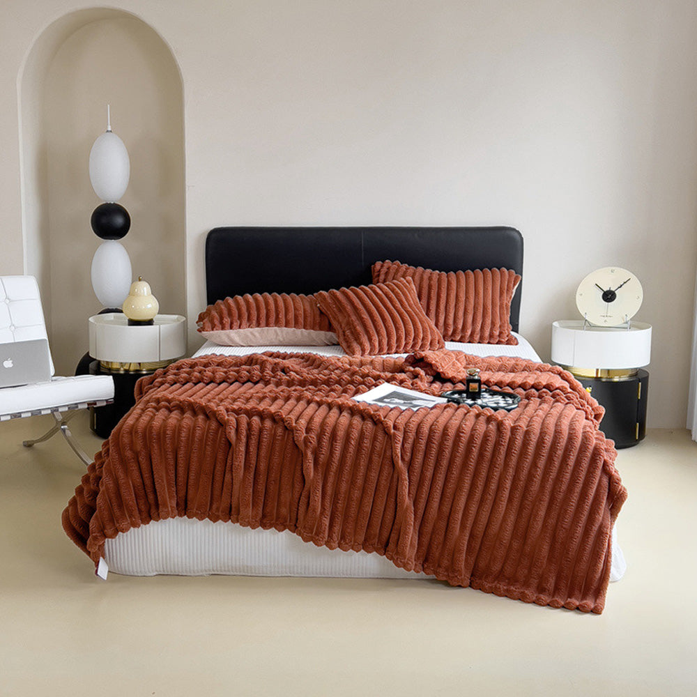 Die üppige, hochdichte Florstruktur der Decke imitiert feinste Naturfelle - eine einzige Berührung genügt, und Sie sehnen sich nach ihrer therapeutischen Umarmung.